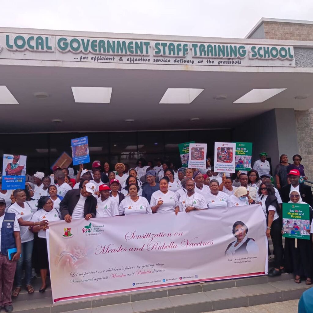 Mrs. Makinde made the appeal during a sensitization program held at the Local Government Staff Training Secretariat in Agodi, Ibadan. The event, an initiative of the Renewed Hope Initiative, aims to boost awareness and uptake of vaccines to prevent measles and rubella, especially among children.