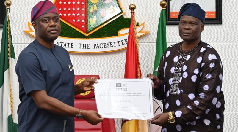 Makinde receives UNESCO Intangible Cultural Heritage Certificate for Sango Festival