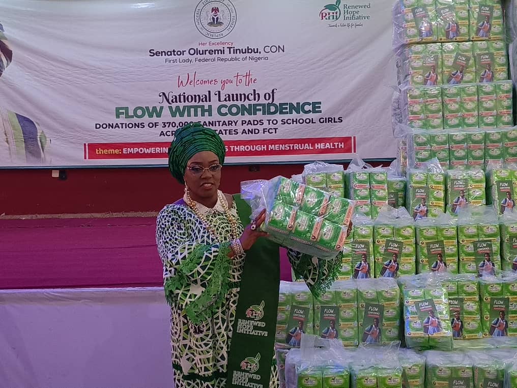 The First Lady, Senator Oluremi Tinubu, has launched the “Flow with Confidence” menstrual hygiene initiative in Oyo State, marking another major step in the nationwide distribution of 370,000 disposable sanitary pads to schoolgirls across the country.