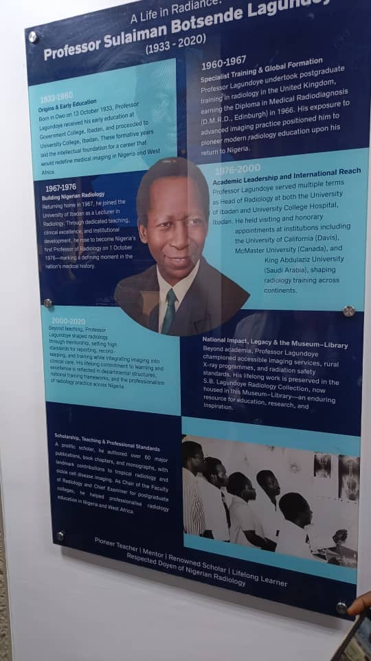 The Provost stated that the commissioning of the S.B. Lagundoye Museum and Library reaffirms the Department of Radiology, University College Hospital, Ibadan, as the mother department of radiology in Nigeria and West Africa.