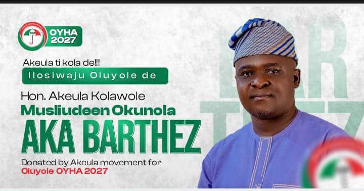 Honourable AKEULA KOLAWOLE MUSILIUDEEN (BARTEZ) for OLUYOLE State House of Assembly 2027.